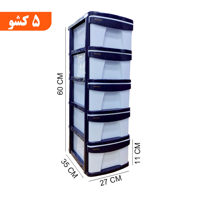 دراور پلاستیکی سبک و مقاوم با کشوهای متعدد برای نظمدهی وسایل در منزل و محل کار.
